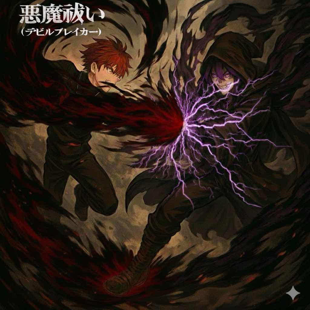 Chapter: 第5話 ②今からおよそ10年前、ある国の悲劇によって世界中を恐怖させた。 その国は、赤い地獄ーレッドヘル。 昔は世界で一番平和で活気のある国だったが10年前の事件によって人はこの国に立ち入る事を禁止された。 そう、人はいない。 昔の事件の影響によって太陽は隠れこの国は年中黒い雲に覆われ冷たい風が街を吹き抜ける。 レッドヘルの中心部には一つだけ壊れていない小さめの建造物があり、その建造物はこの国の地下に繋がっている。 その地下には世間には知られていない場所があった。 地下の悪魔の住処ー通称(悪魔界) そこにはたくさんの悪魔が生存していて地下には建物や店が出回っていた。 そこにも人間と同じようにトップの悪魔が存在しその者達が集う場所があった。 その部屋には10人程度の悪魔達が椅子に座っていてそのうちの1人の男が言った。 「おい、聞いたかよ?あのロフィスがやられたらしいぞ?」 その男は逆立った黒髪に目がつり上がっている悪魔だった。 その発言に今度は手足の細いスタイリッシュな体型に金の長髪にウェーブが掛かった大人女性が返答した。 「らしいわね。あの予知能力は私達にはない存在だったから結構便利だっだのに…残念だわ。」 その女性はロフィスではなく、ロフィスの能力にしか興味がないようだった。 「なに呑気な事言ってやがんだ。ロフィスが殺られたって事はよぉ、あの悪魔祓いとか言う人間に負けたってことだろーが!」 逆立った髪の男が金髪の女性を睨みつけ怒鳴った。 それに対して女性はクスッと笑い。 「全く、まだまだ可愛い"憤怒"ね。まるで怒鳴るのがカッコ良いと思ってるような学生の反抗期のようね。」 「うっせーな"色欲"のくそババァ。てめえみてえなバカ女は男のケツでも追っかけてろ!」 憤怒と言われた男は凄みを利かしながら言った。 すると女性から笑顔は消え、無表情の顔になった。 ガタァンッ!! 「……は?あんた喧嘩売ってんの?」 椅子から立ち上がると黒いオーラが体の周りから発生し、それを見て憤怒の男が下品に笑いながら挑発する。 「ハッ!やるなら掛かって来いよ!このブスが!」 「このガキ……一回死ななきゃ分かんないのかな…?」 2人が攻撃態勢に入ろうとしたその時。 バァァァン!!! 机を思